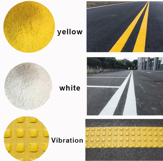Moreover, the reflective effect of cold applied coatings is relatively weak. In addition, two-component road marking paint is a new type of marking paint, which consists of two components that need to be mixed evenly before construction. The performance of two-component coatings is between hot melt and cold coat types, with good durability and reflective effect, and is also relatively easy to apply. The curing speed of two-component coatings is fast, and they can form hard markings in a short period of time.