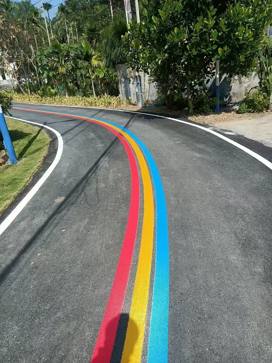 More and more Chinese Scenic spot/Moutains/Villages use rainbow road lines, this makes roads more pretty. With the development of economy, the road marking purpose is not only traffic safety, but also more beautiful, cultural and creative elements. More and more creative line marks will become the name card of cities…