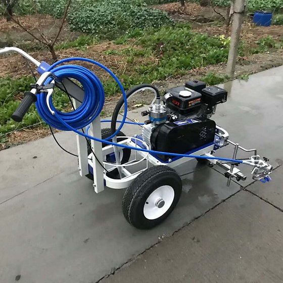 Cold paint road marking machine is high-pressure airless line striper for solvent-based and waterborne coating spraying. It comes with double guns, spray width can reach 50mm-450mm. With the pretty design, stable pump pressure, high quality rubber tyres, special spray gun hanger, the painting lines are uniform and straight, line edges are neat and pretty.