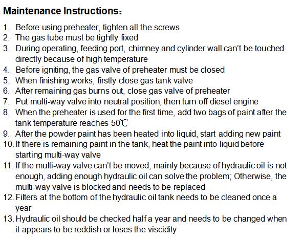 EWTP-1000 Diesel and gas dual-use thermoplastic preheater is improved based on common thermoplastic(gas type). This type of equipment is apart from the common type in heating system. It use advanced oil gas dual-purpose stove(liquefied petroleum gas and diesel oil can be used as fuel) so that the good fuel efficiency and fuel economy will be fully guaranteed . Especially in strong wind area, oil type is not easy to be affected by the wind force which will ensure the high fuel efficiency and melt speed thus reducing the construction costs. It must be the first choice for the construction in large temperature difference areas.