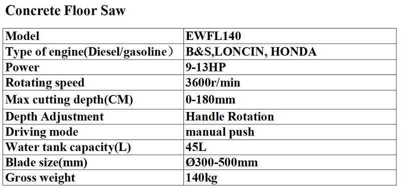 Concrete saws are mainly used for road maintenance work, longitudinal cutting and cutting of concrete and asphalt pavements. It is widely used for cutting concrete, masonry, bricks, asphalt, tiles and other solid materials.