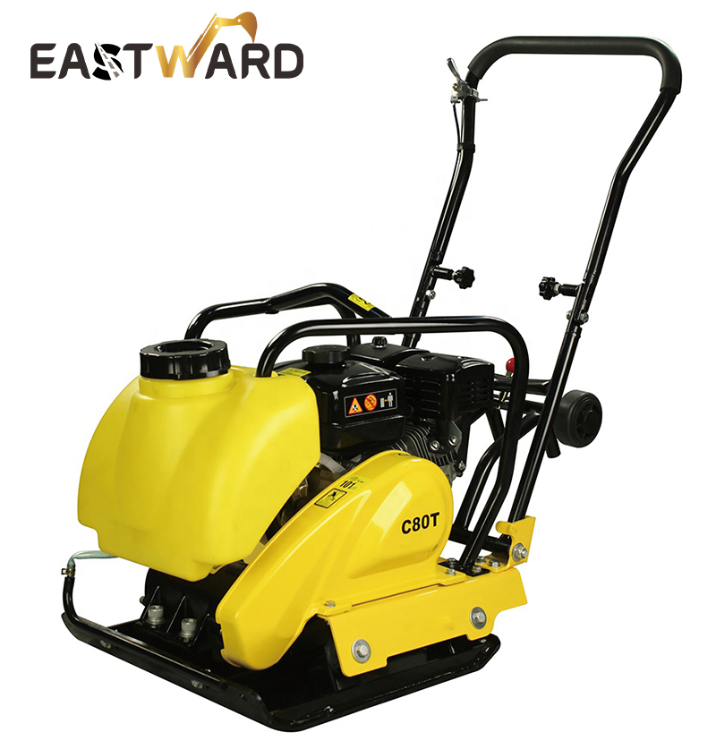 EASTWARD plate compactors are the machine that compact the ground and they intend to make the surface smooth by transmitting vibration through vibrating plate, whose power generated from the motor in vibrator case. The exciter system(directed vibrator) is driven via V-belt and centrifugal clutch.